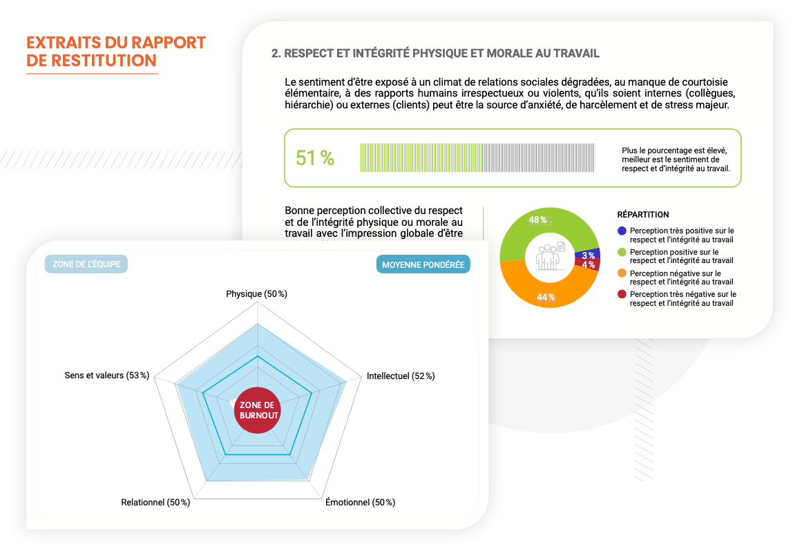 A partir d’un questionnaire anonyme réalisé en ligne par vos collaborateurs, nous allons dresser un profil de vos ressources et zones de vigilance.